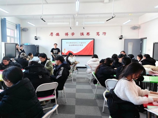 为深入学习宣传贯彻党的二十届四中全会精神,引导青年学生精准把握全会核心要义和实践要求,筑牢理想信念根基,近日,马克思主义学院党委举办“学习贯彻党的二十届四中全会精神知识竞答活动”,以趣味竞答为载体,推动理论学习走深走实、入脑入心。学院全体学生入党申请人,思政系学生第一、二党支部的所有积极分子、预备党员、正式党员参加竞赛。