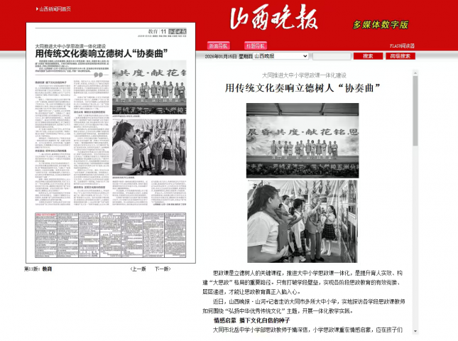 近日,山西晚报·山河+记者走访大同市多所大中小学,实地探访各学段思政课教师如何围绕“弘扬中华优秀传统文化”主题,开展一体化教学实践。